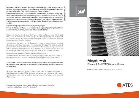 Pflegehinweis Plissee & DUETTE® Waben-Plissee