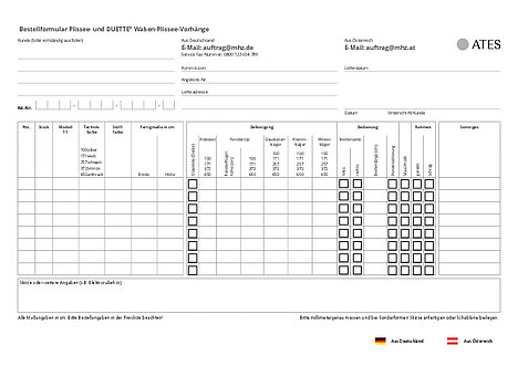 Bestellformular Plissee & DUETTE® Wabenplissee